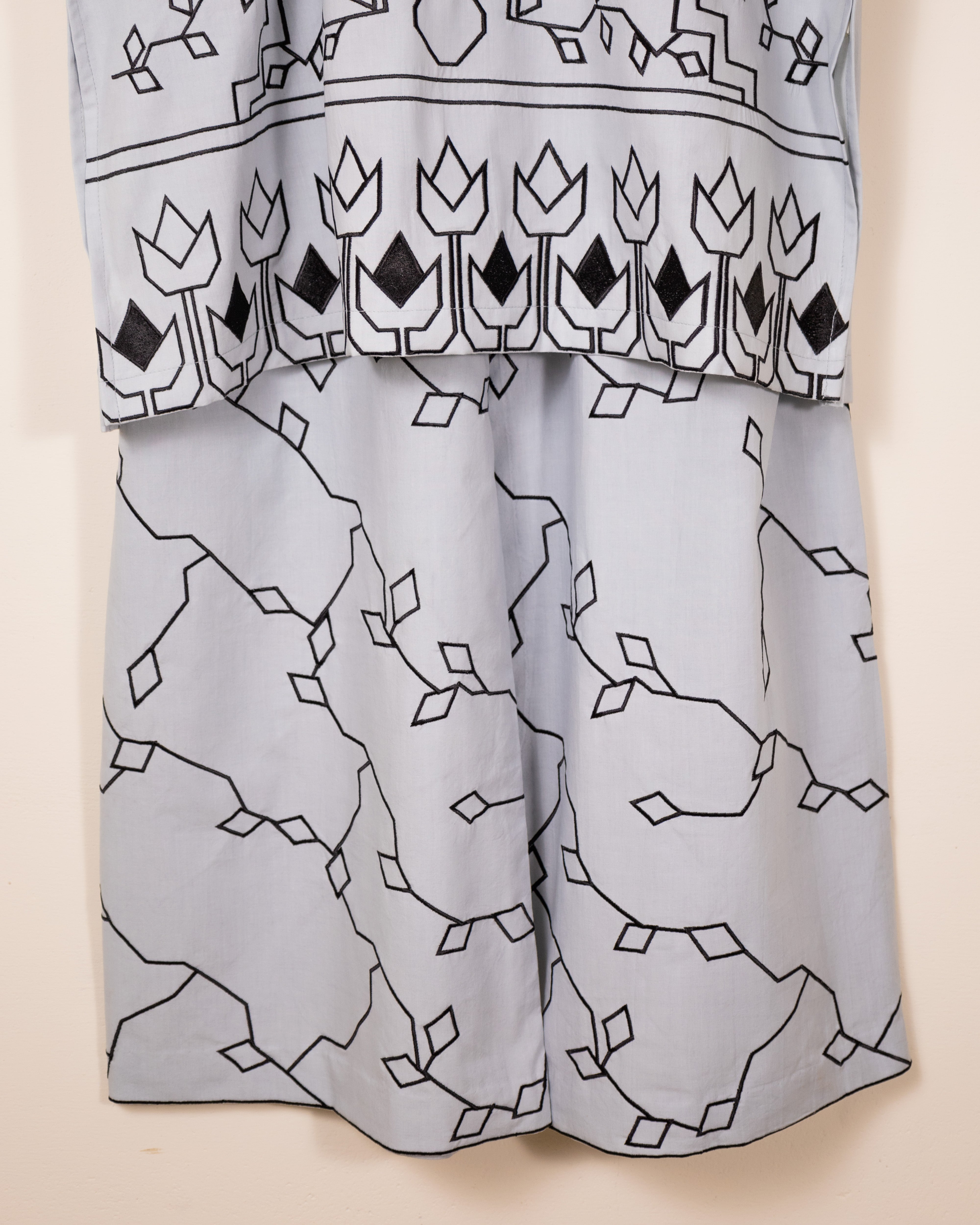 A breezy two-piece cotton set that blends everyday comfort with a fashion-forward edge. Cut in a trendy silhouette, it’s adorned with contemporary, resort-inspired embroidery that brings a touch of coastal charm to your look. Lightweight yet elevated, it’s the perfect balance of effortless style and modern sophistication.