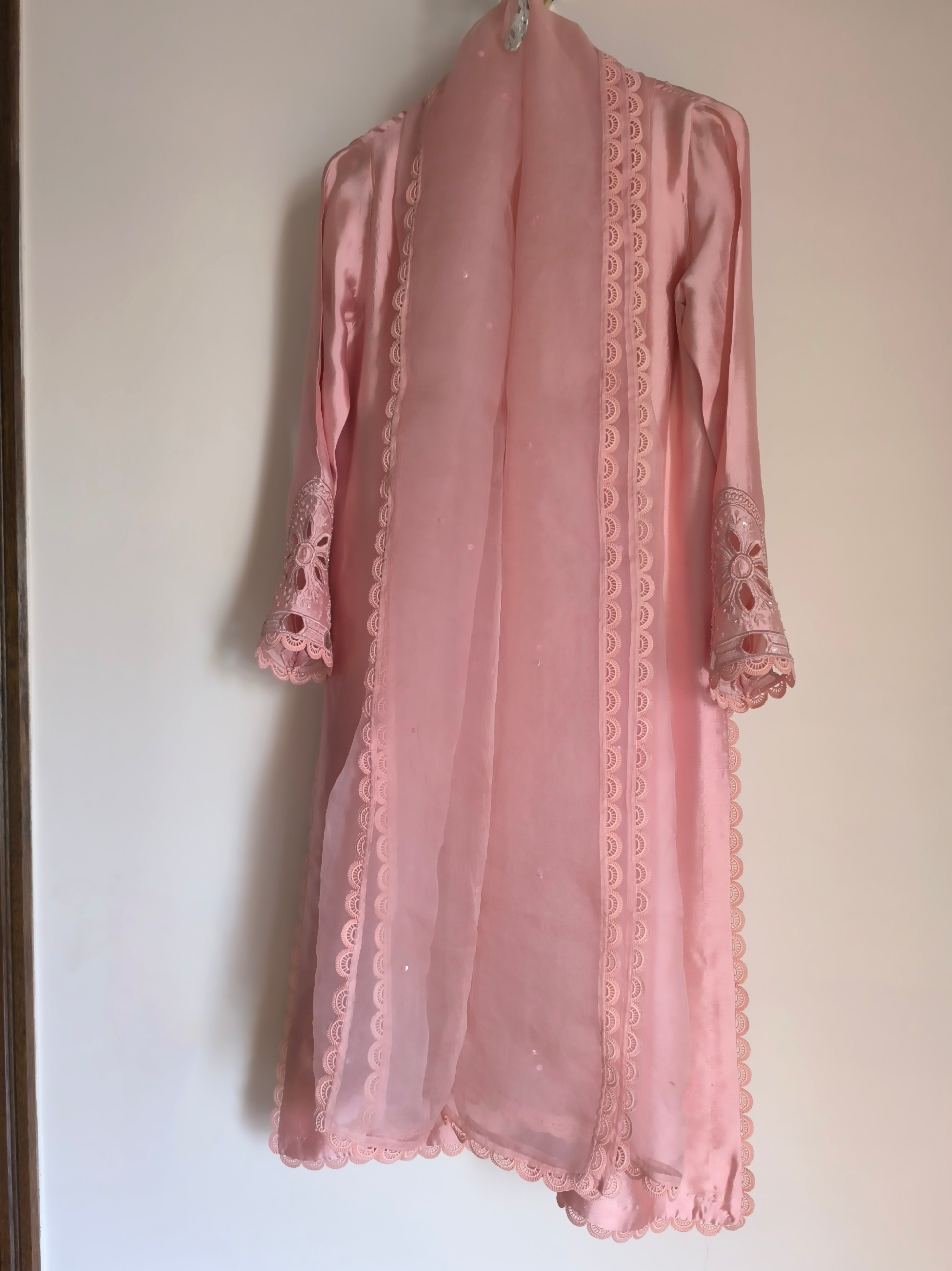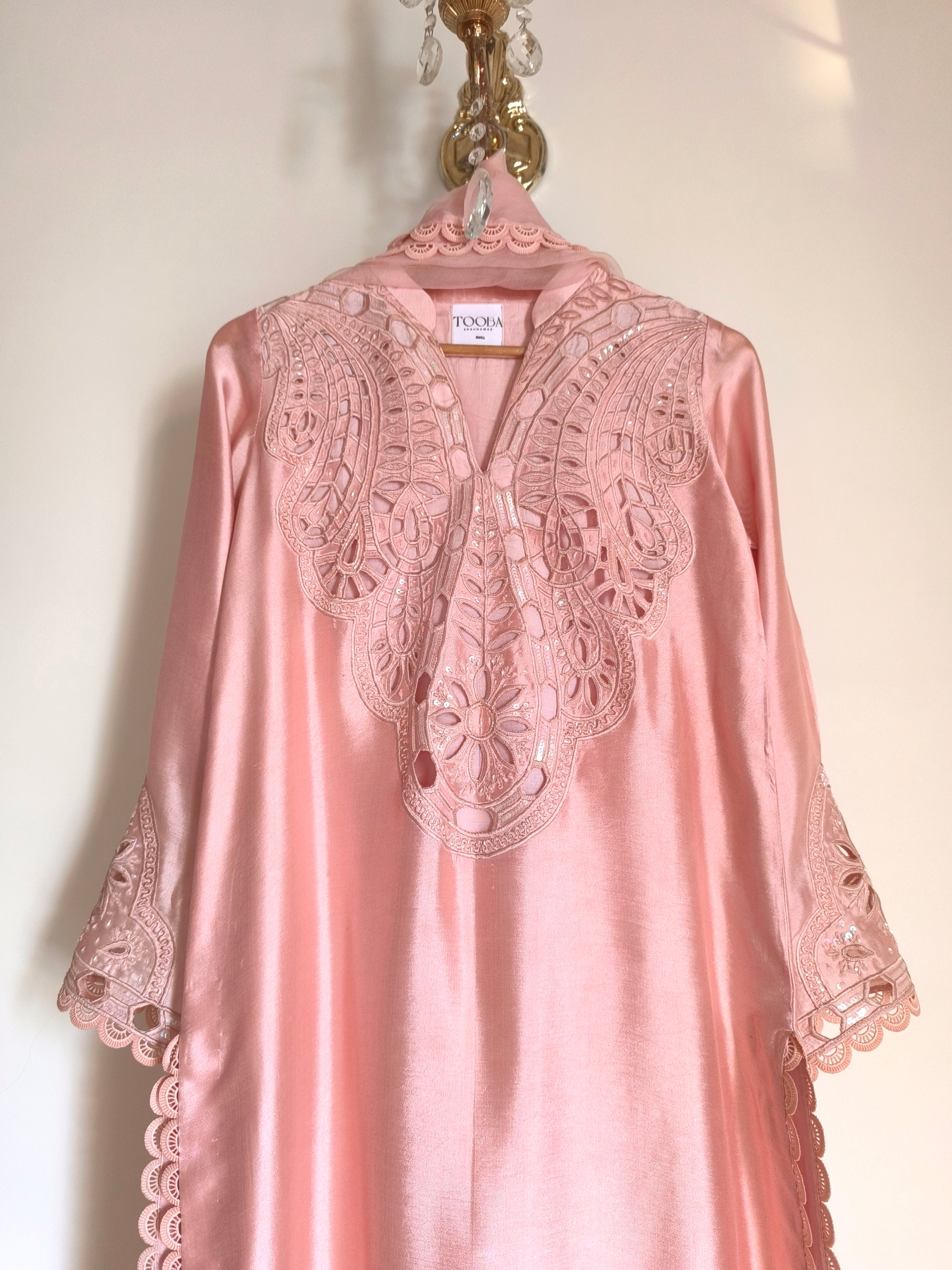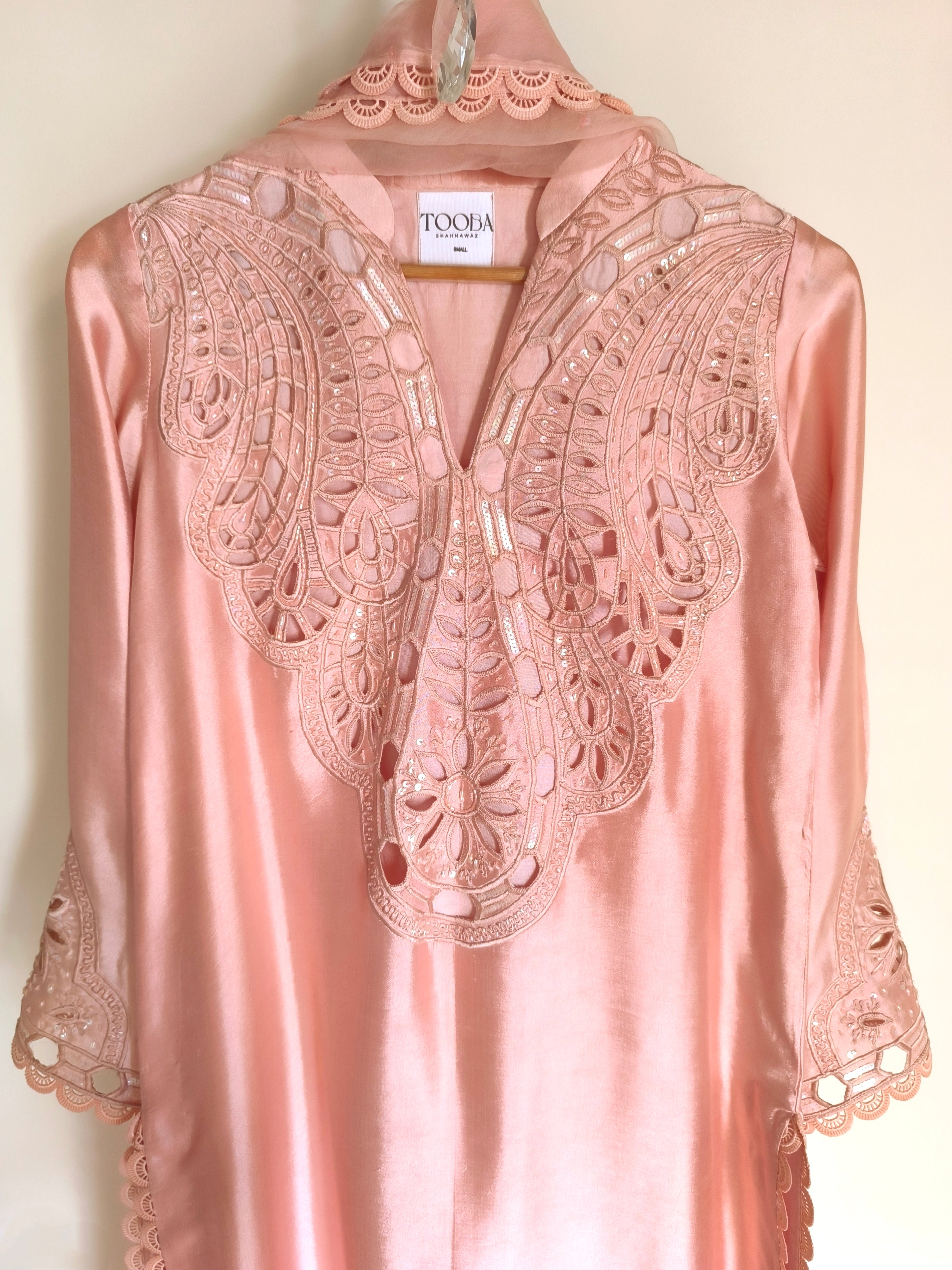 Sahar 2.0 is a statement ensemble through and through. From the choice of fabric, to the silhouette, to the embroidery pattern, everything has been done with meticulous attention to details. Cut in pure sheesha silk and paired with our medium silk dupatta, it's a wardrobe staple.