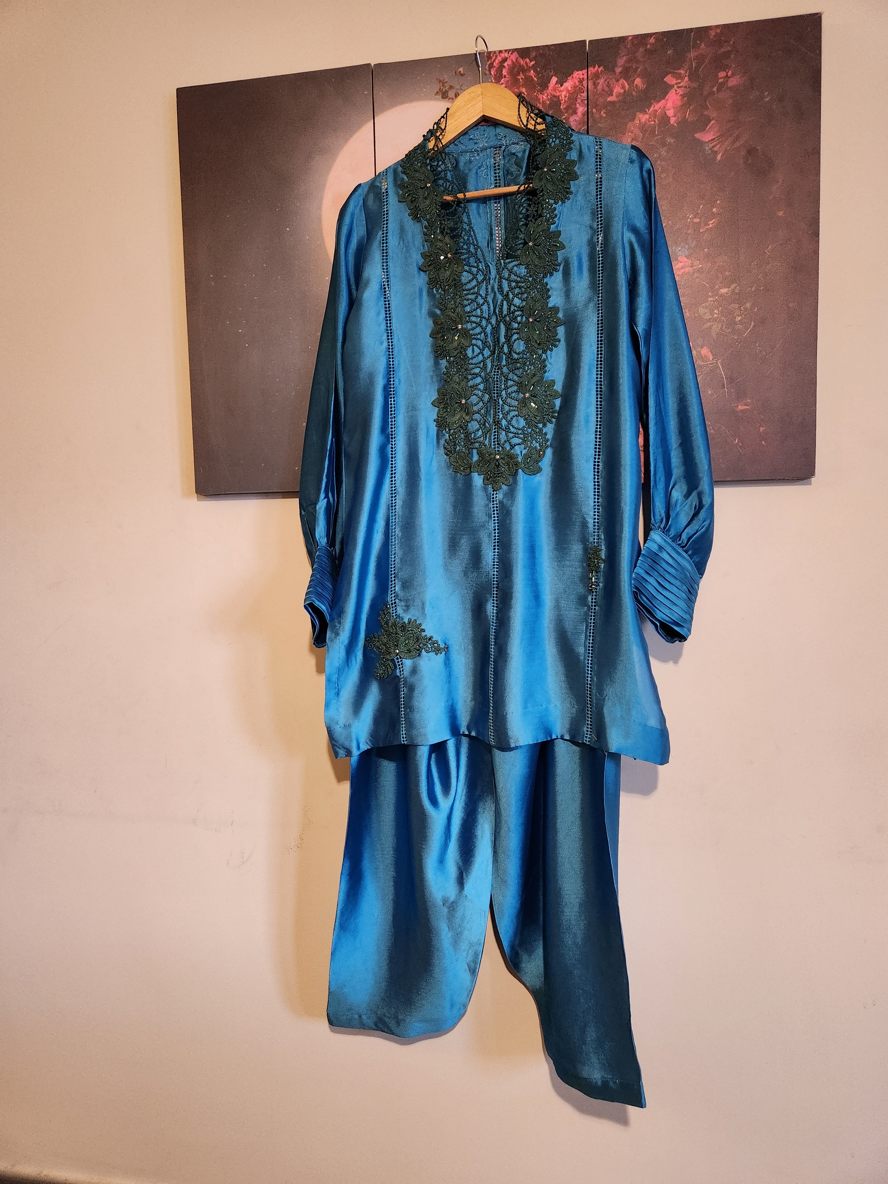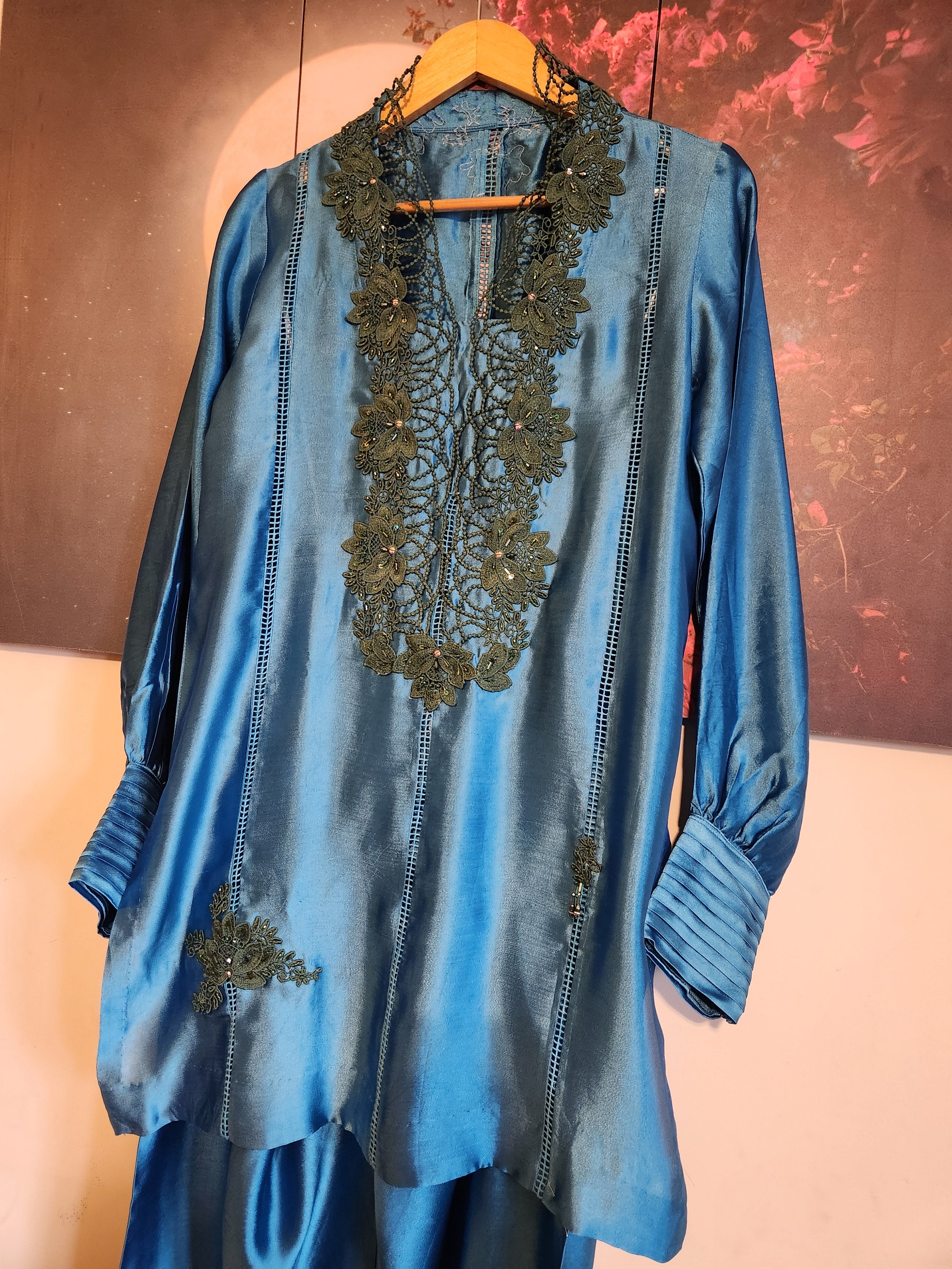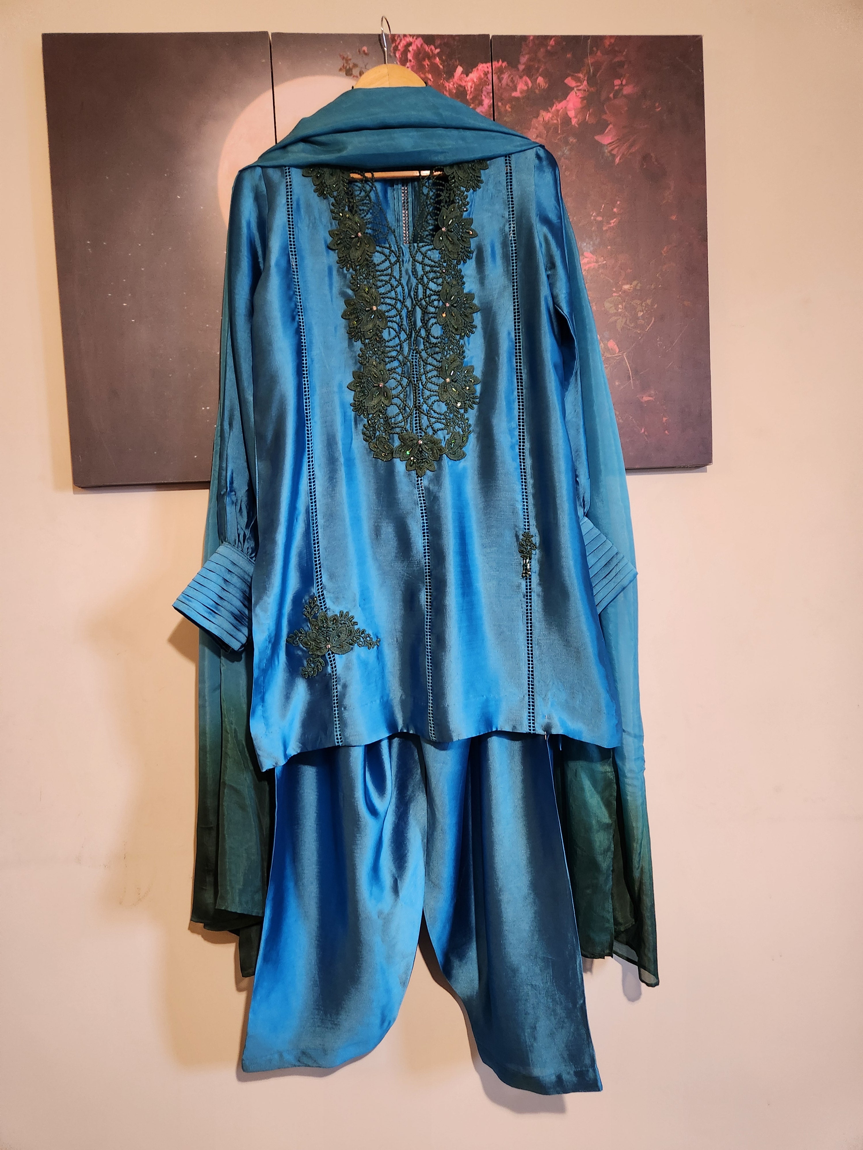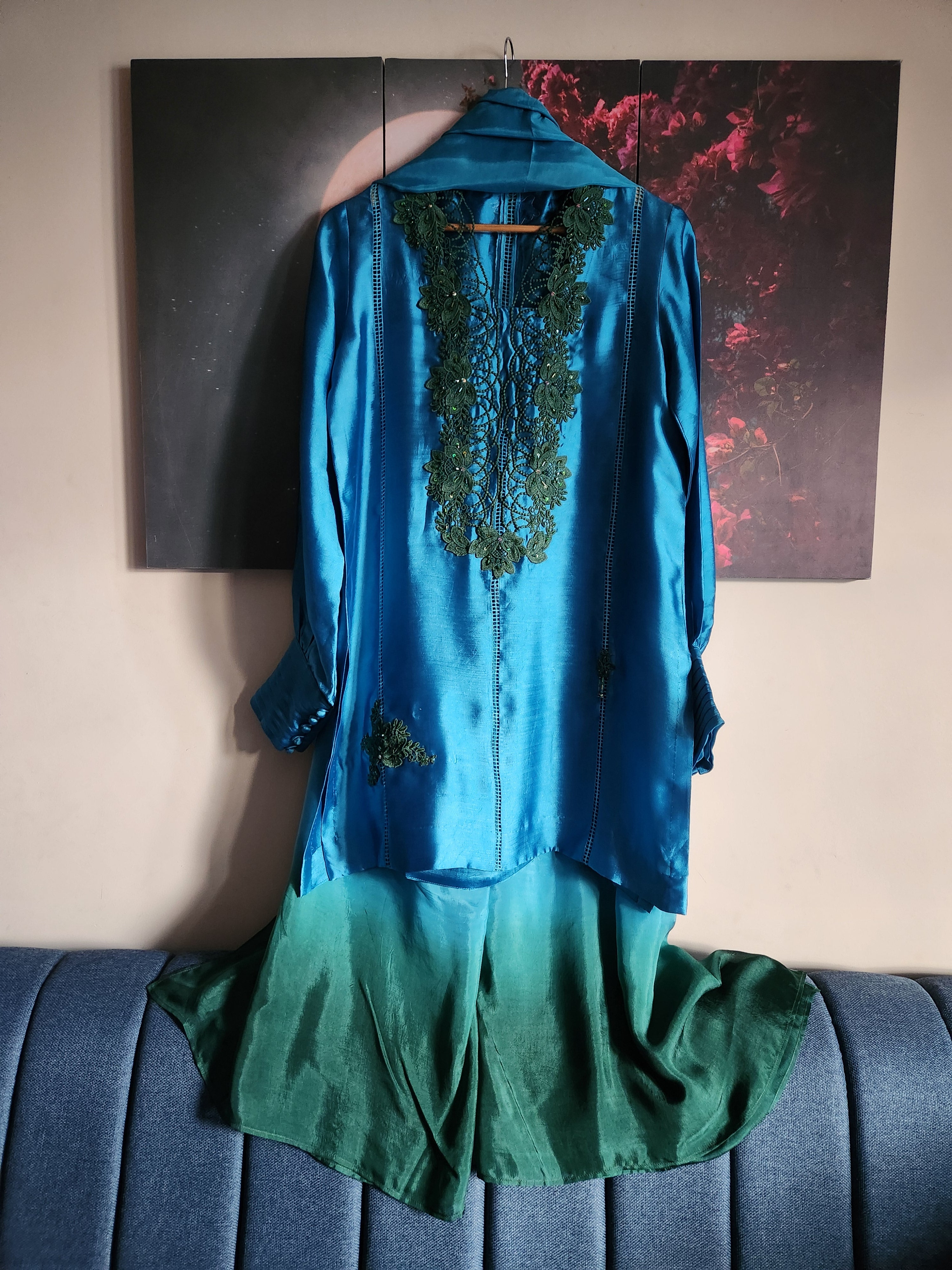 Casablanca- a two piece Sheesha silk dream of an outfit with crystal and sequence embellishments. Pair it with our silk ombre dupatta for an unforgettable look