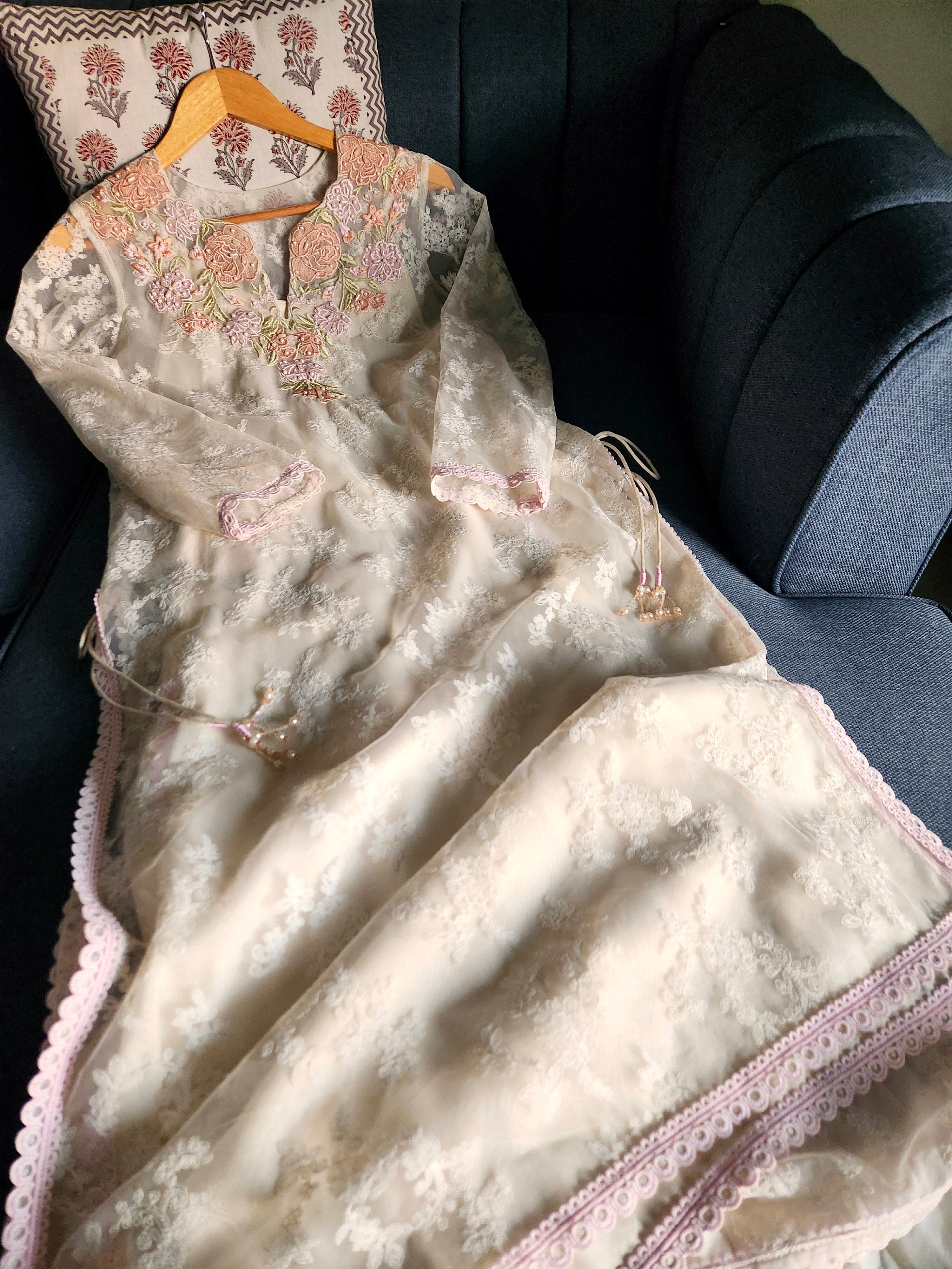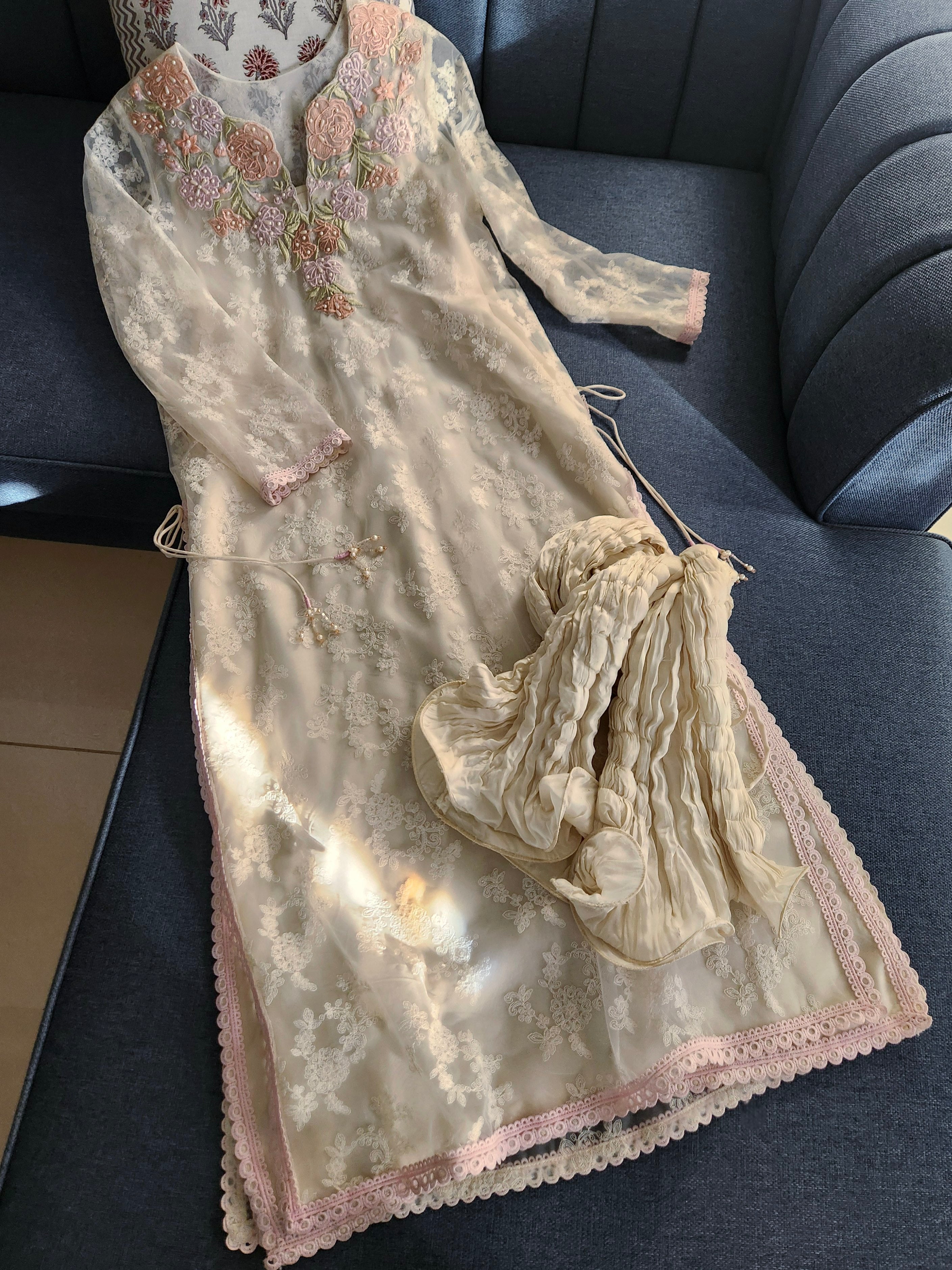 Material: Net Shirt with cotton silk slip and crushed trouser