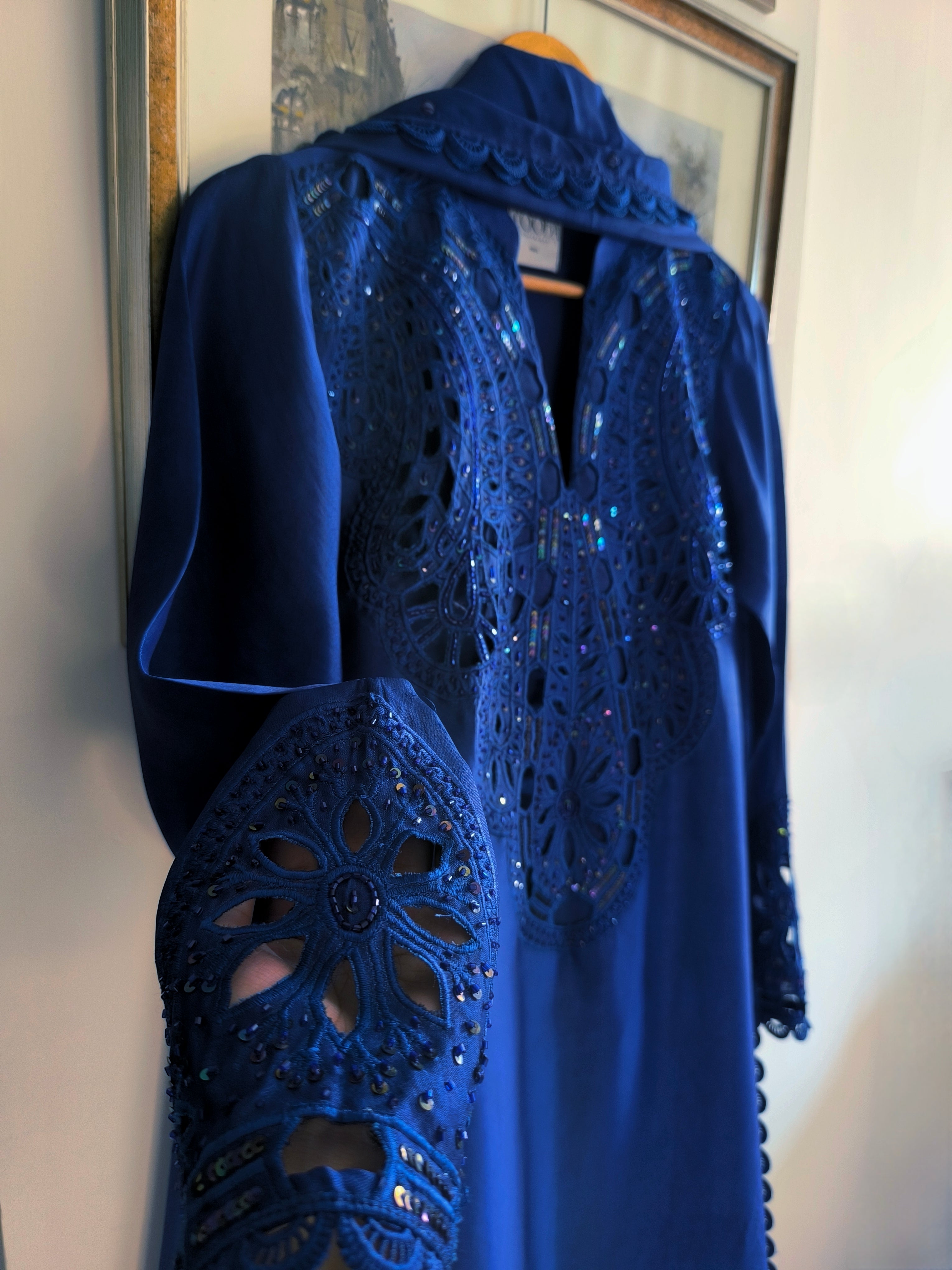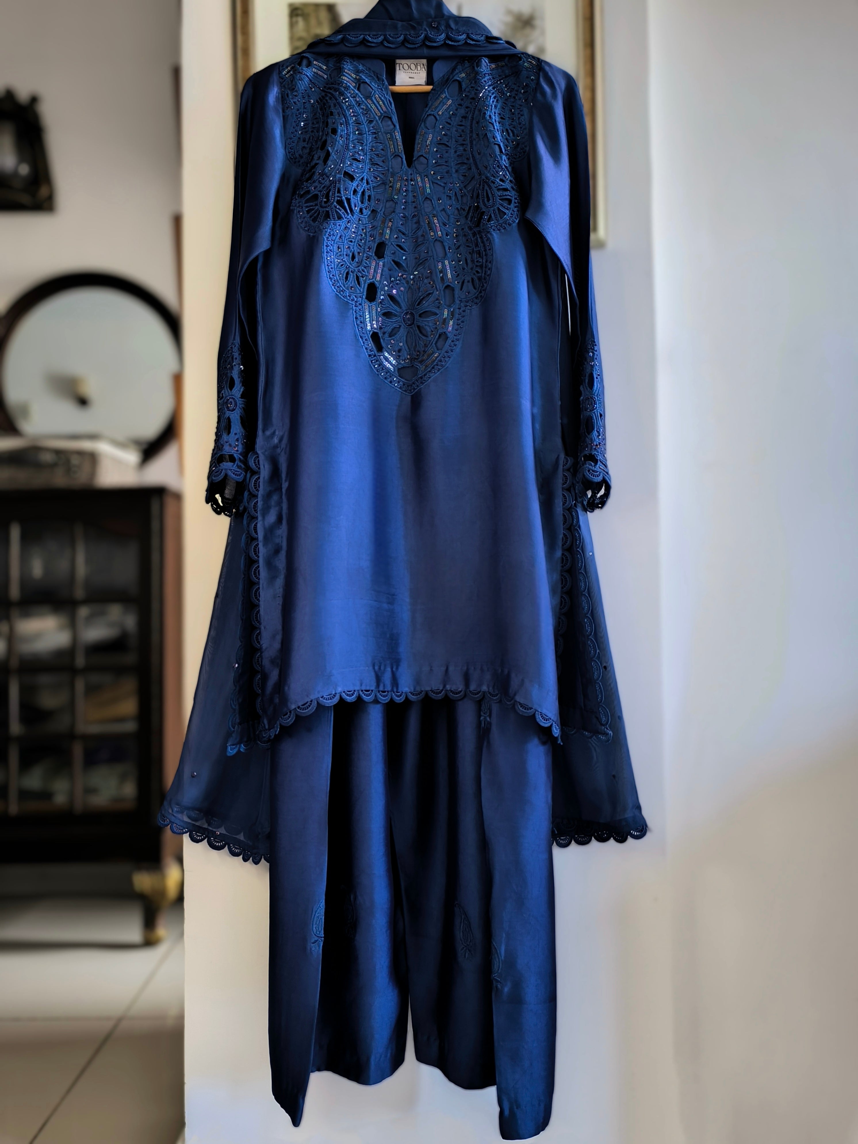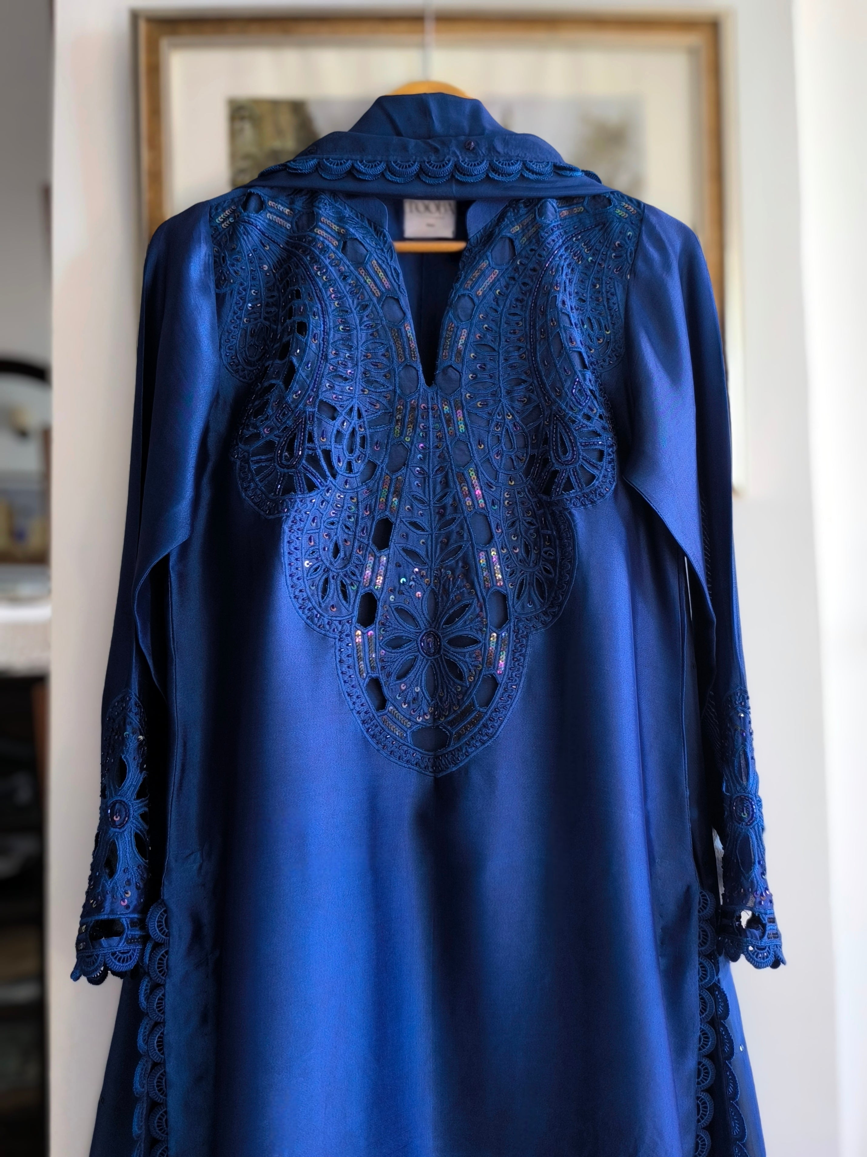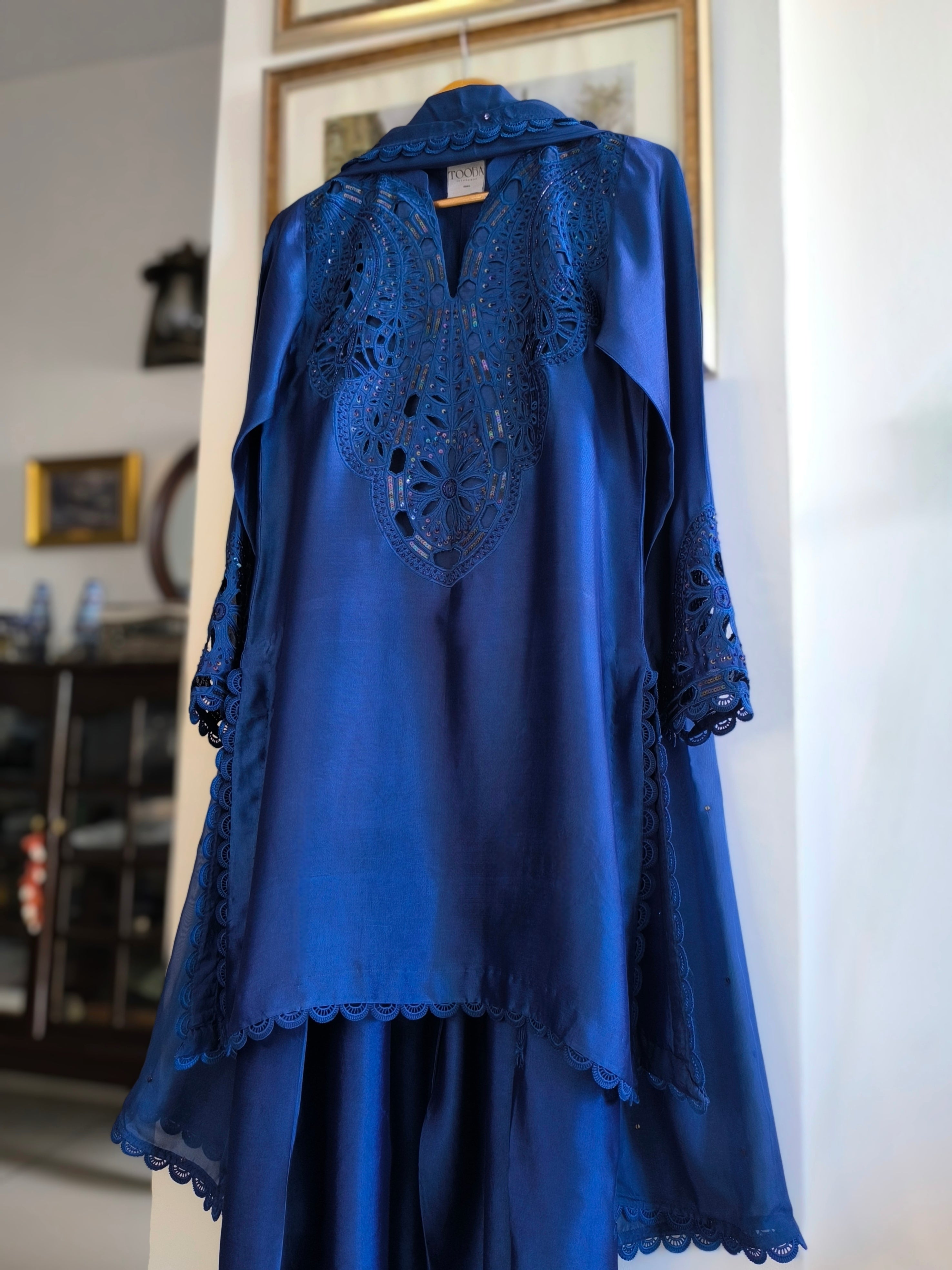 Sahar is a statement ensemble through and through. From the choice of fabric, to the silhouette, to the embroidery pattern, everything has been done with meticulous attention to details. Cut in pure sheesha silk and paired with our medium silk dupatta, it's a wardrobe staple.