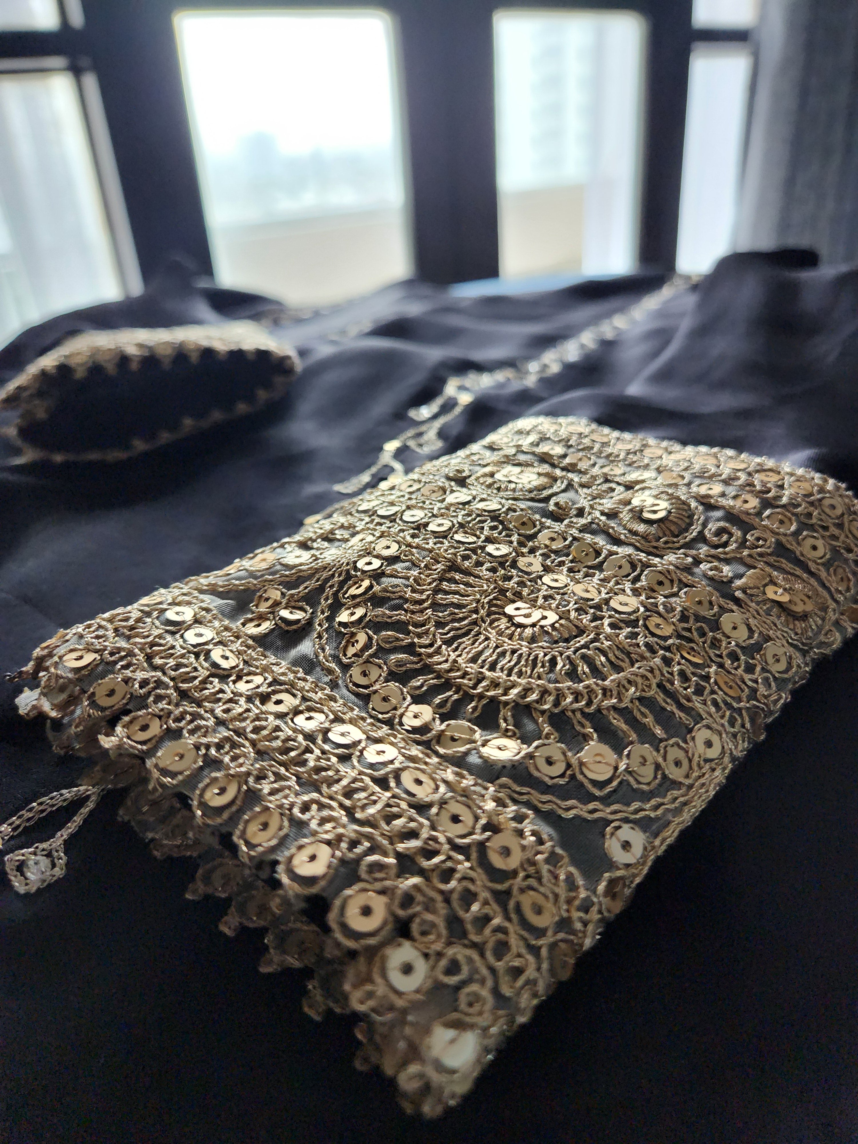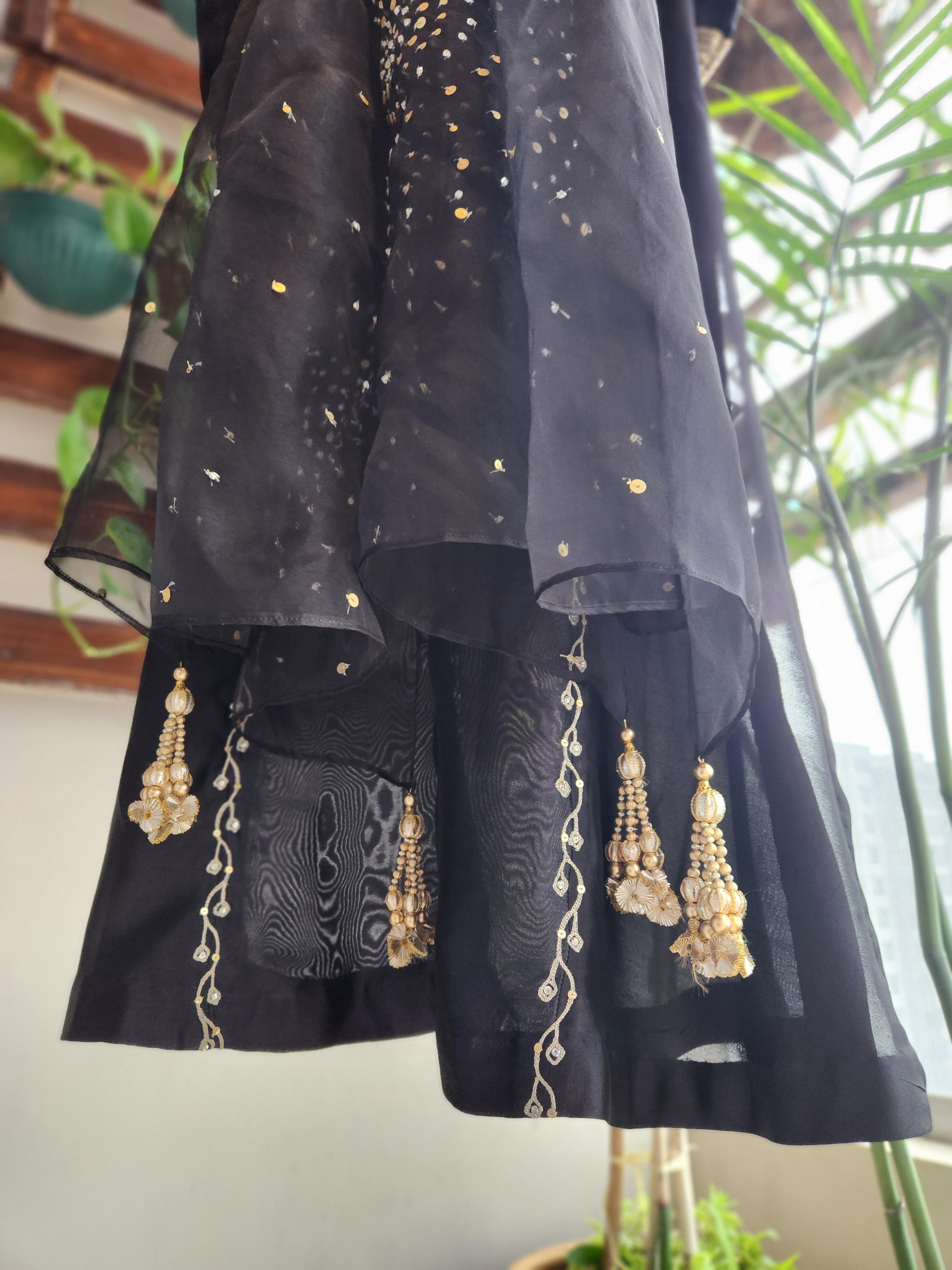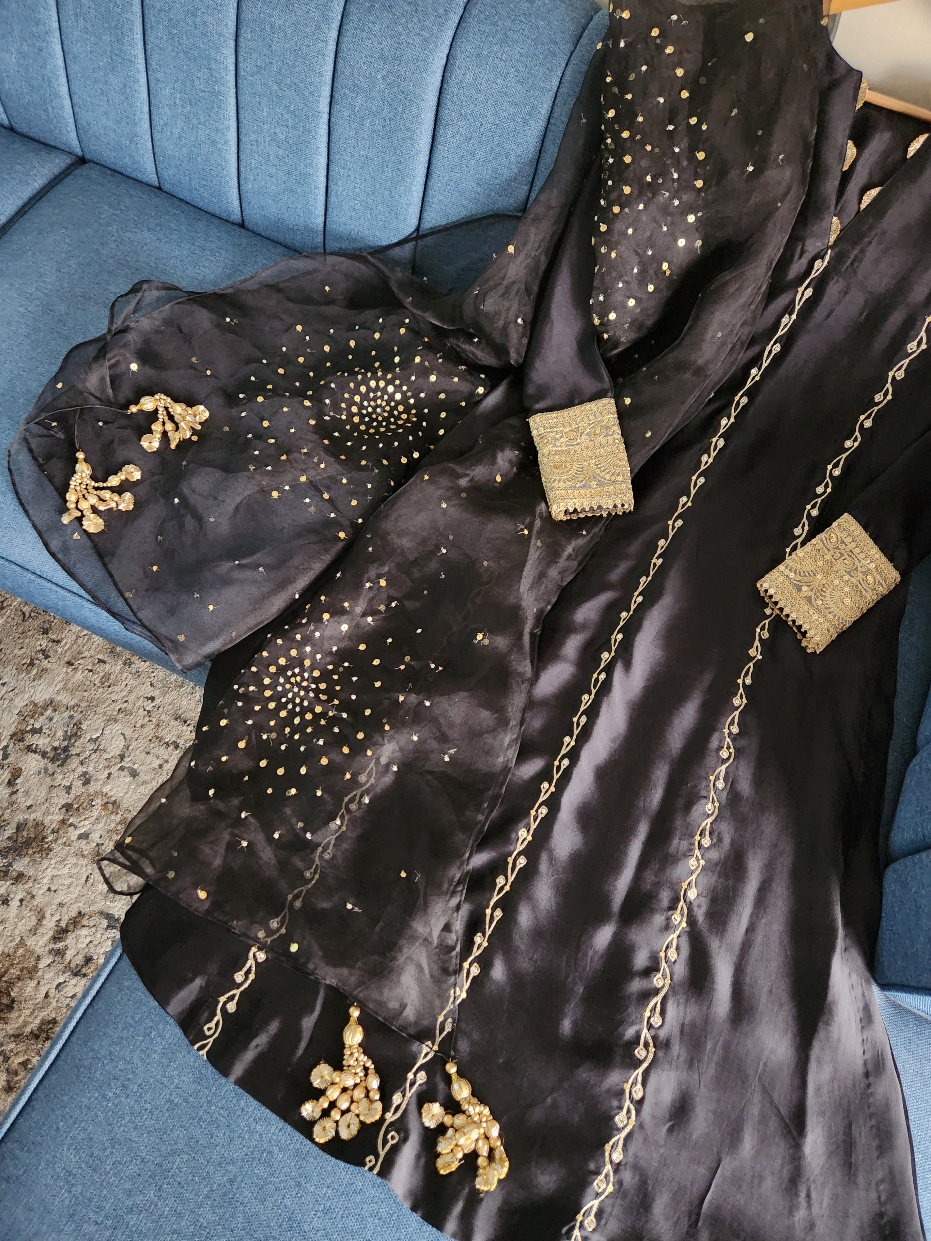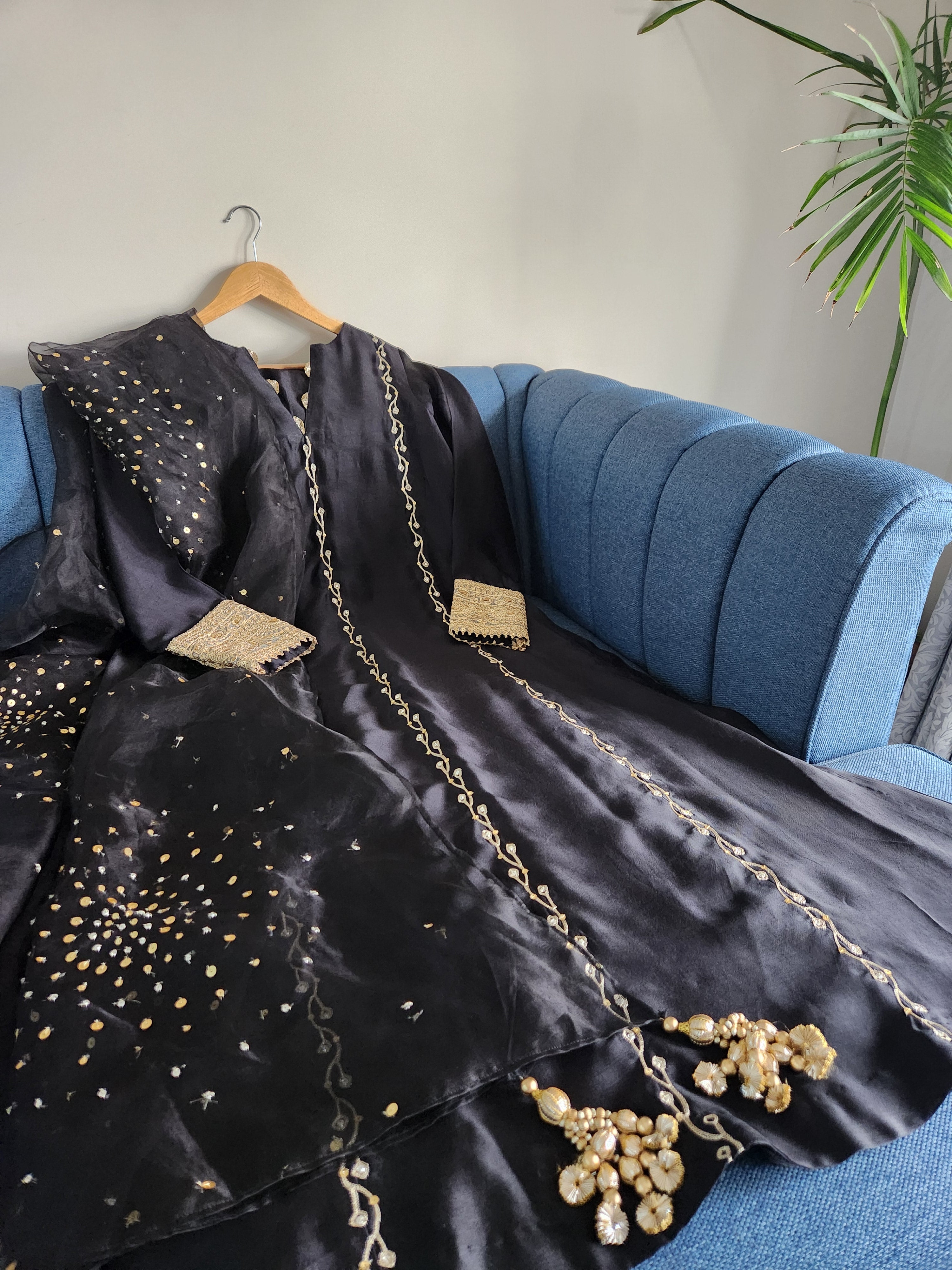 Cut in sheesha-silk, Starlight is a go-to number for festivities. It mixes the new and old sensibilities gracefully and is a true reflection of what modern classics look like. Pair it with our starlight dupatta for maximum oomph.