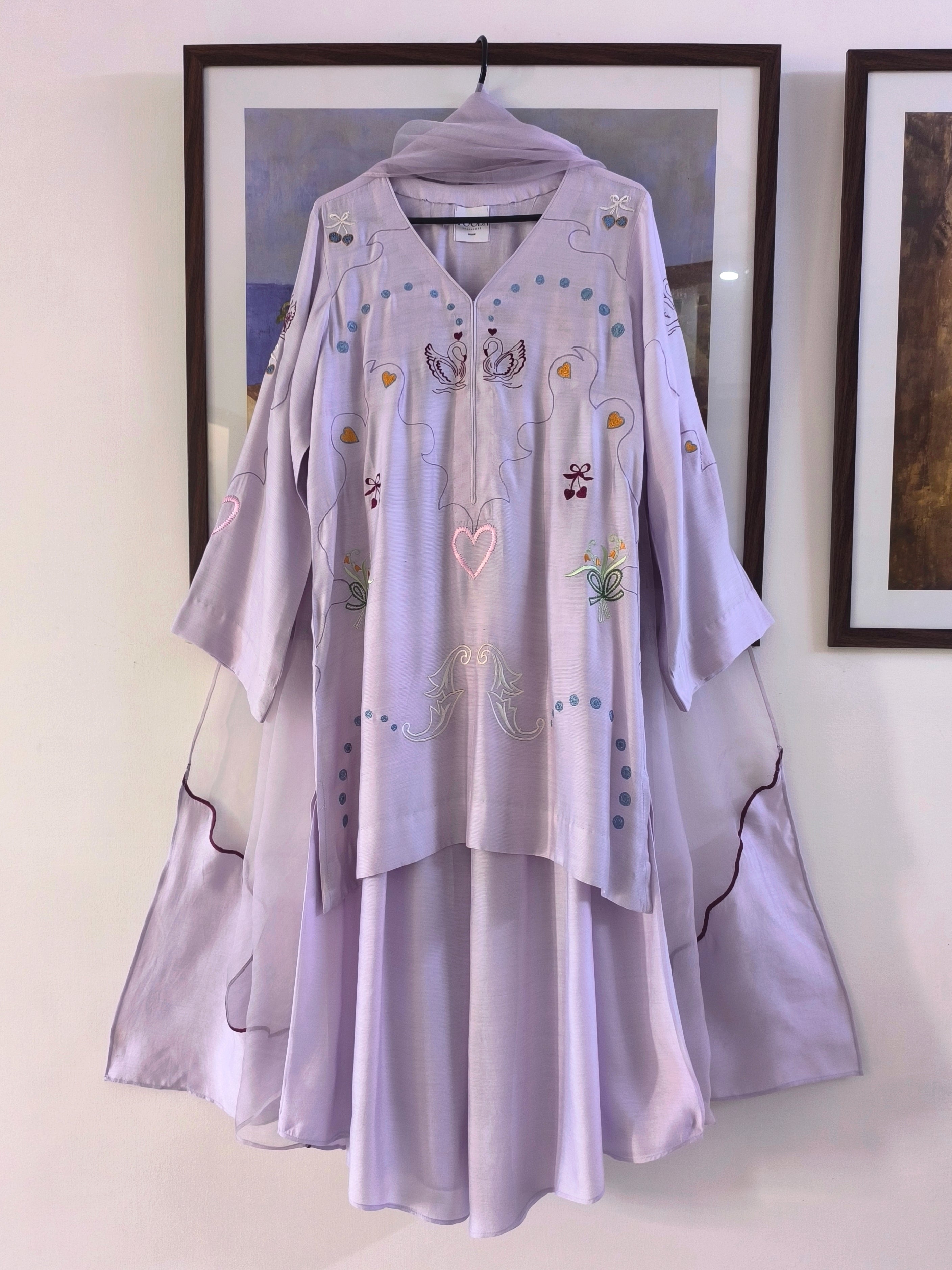 Bella is a statement ensemble through and through. From the choice of fabric, to the silhouette, to the embroidery pattern, everything has been done with meticulous attention to details