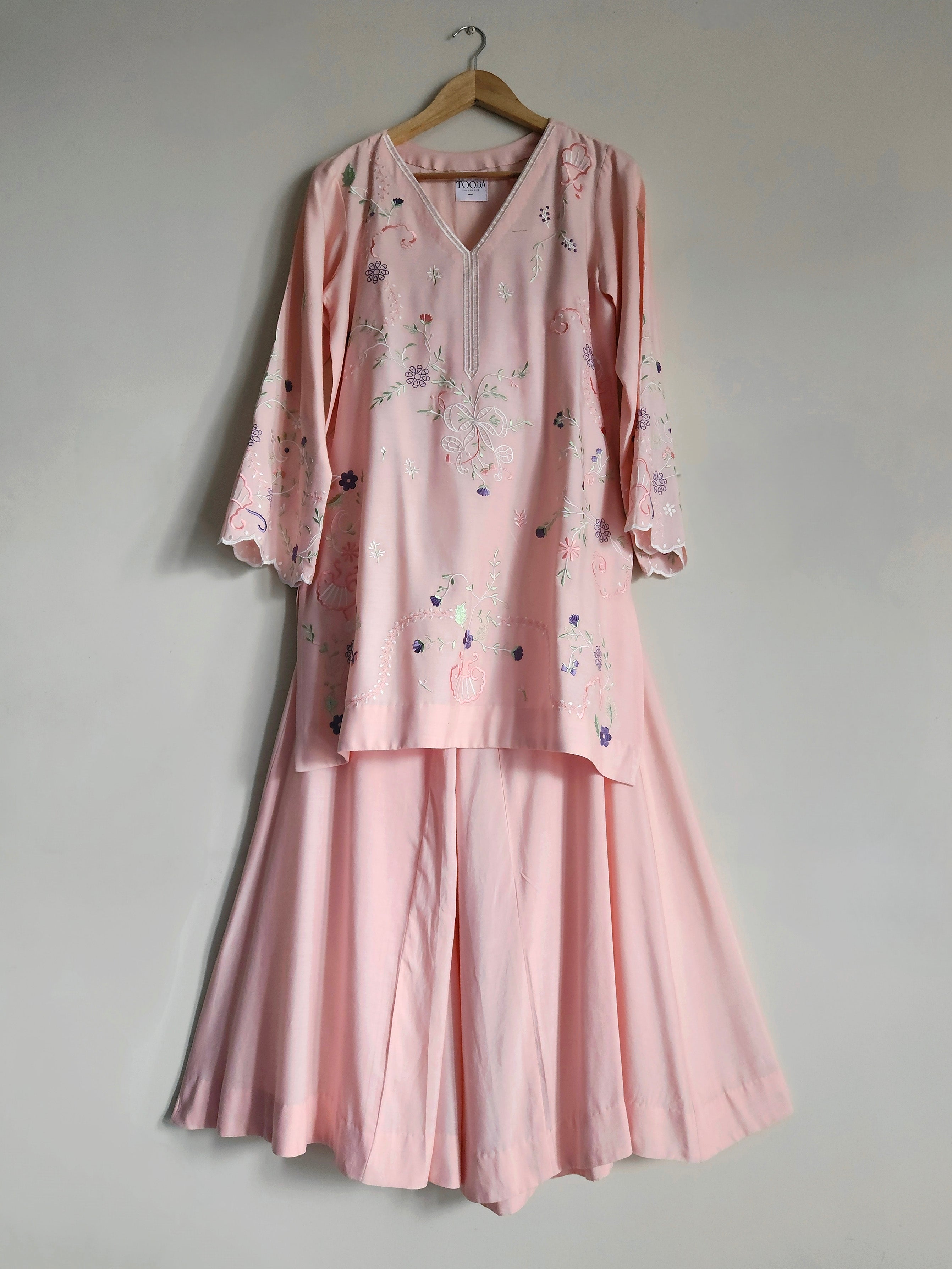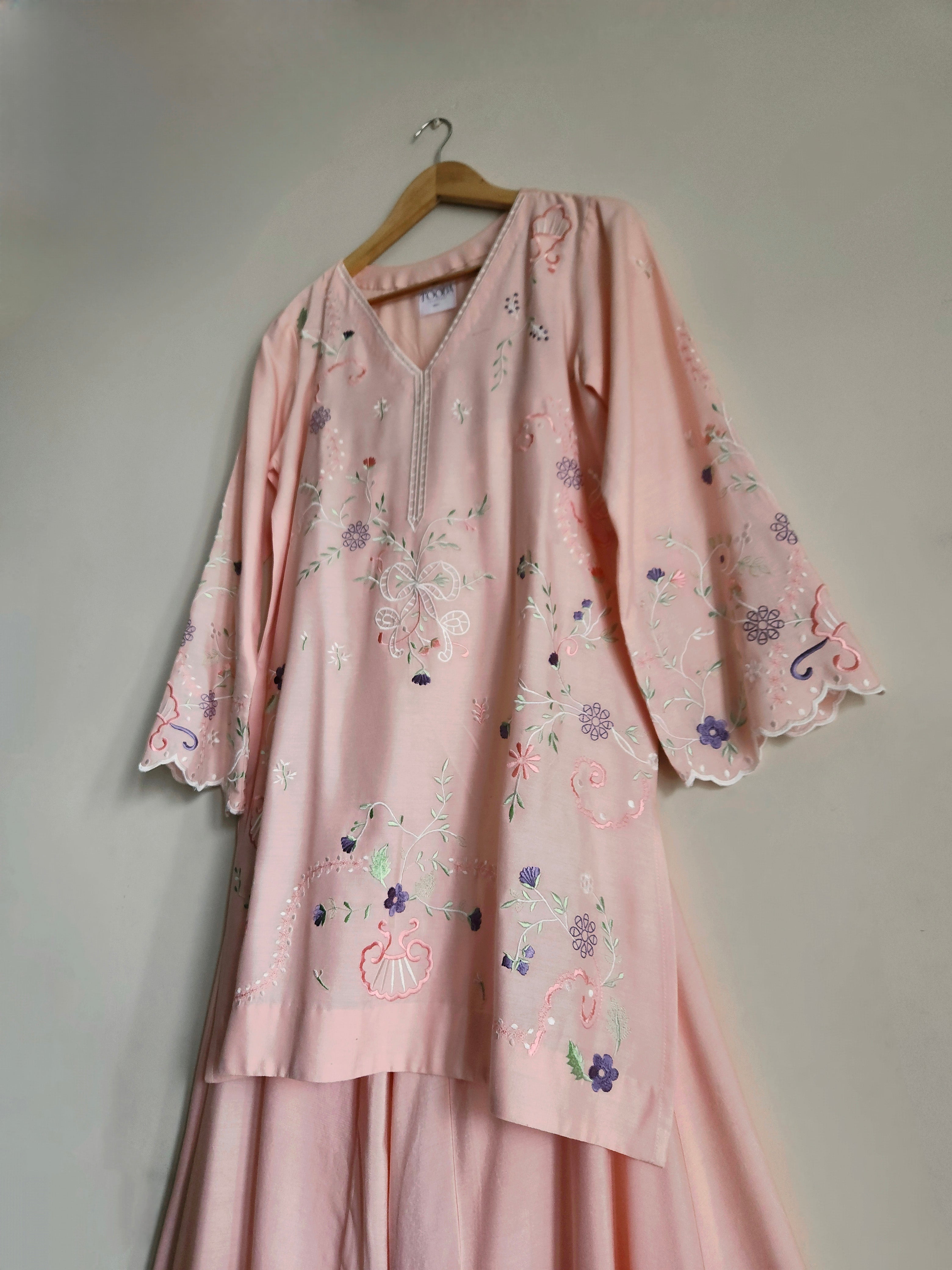 It’s pretty, comfortable, and perfect for all those in-between occasions where you want to pull off a memorable look without trying too hard. Pair it with a matching polynet dupatta with lace edging for a finished look.